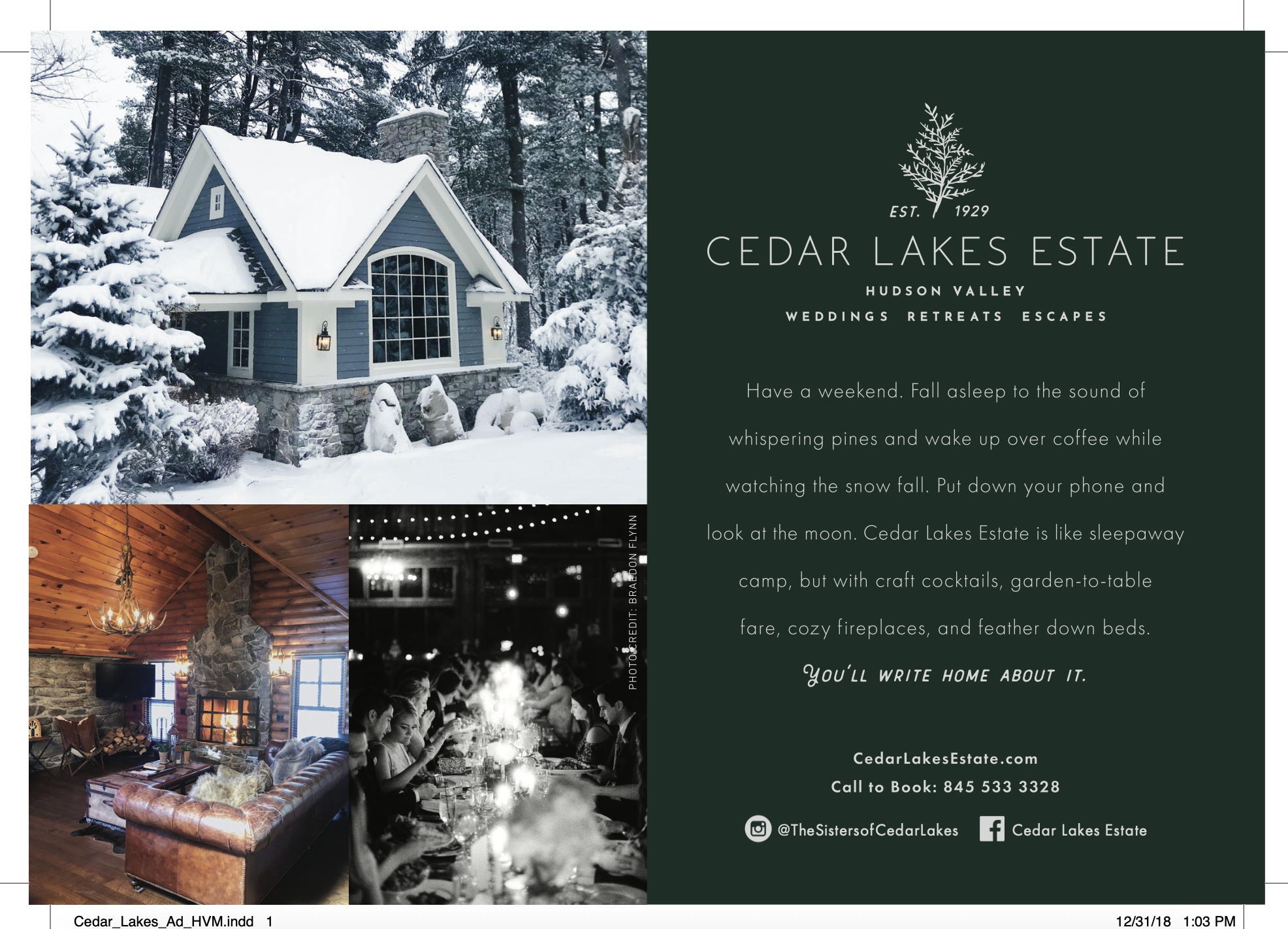 Have a weekend at Cedar Lakes EstateAn outdoor mood-inducing brand story for a lakeside estate 1.5 hours from NYC. Slide 1 Slide 1 (current slide) Slide 2 Slide 2 (current slide) Slide 3 Slide 3 (current slide)