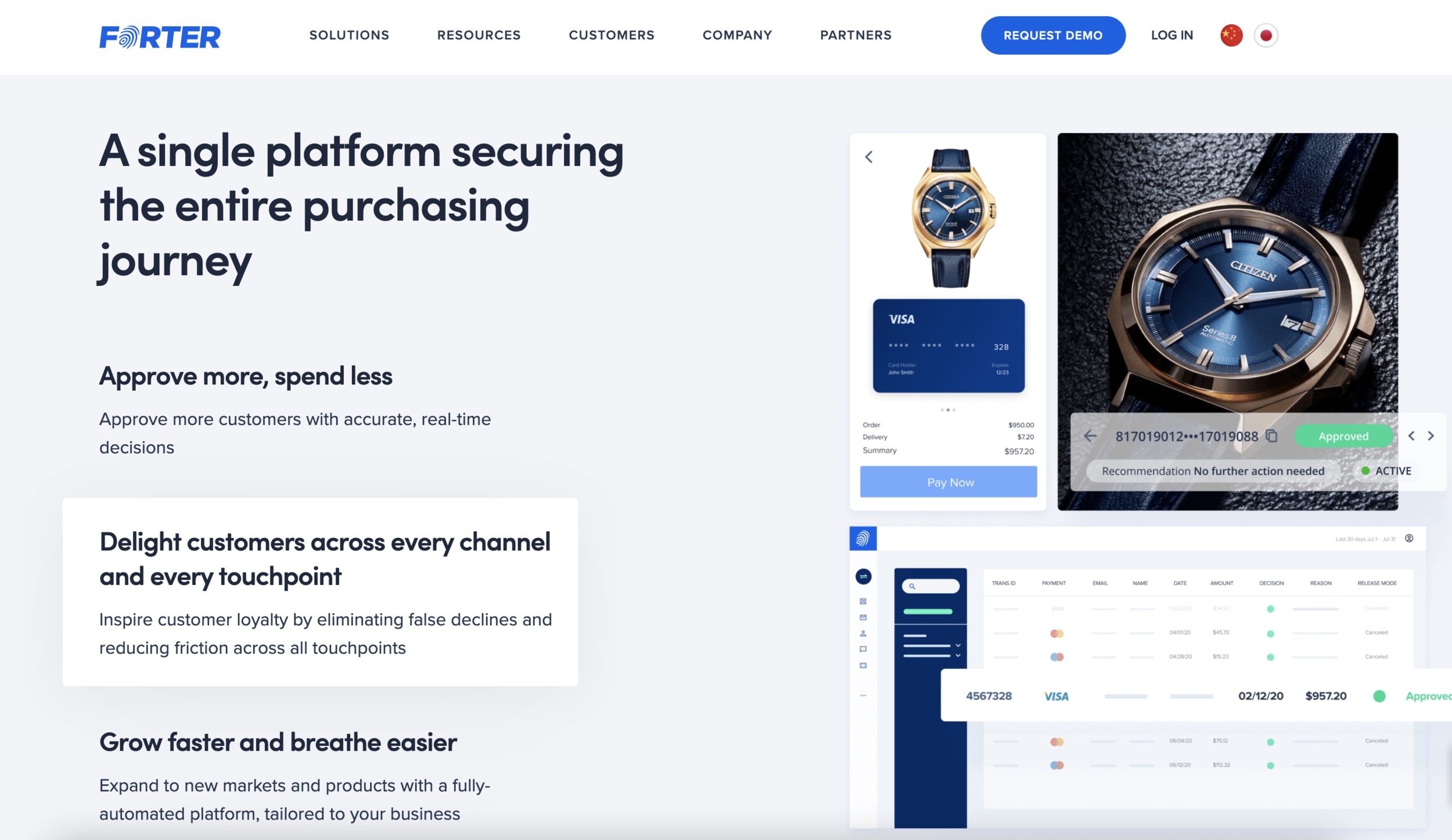 Tighter headlines, more descriptive subheads and easier-to-read body copy gave Forter a fresh tone to go with its updated look.